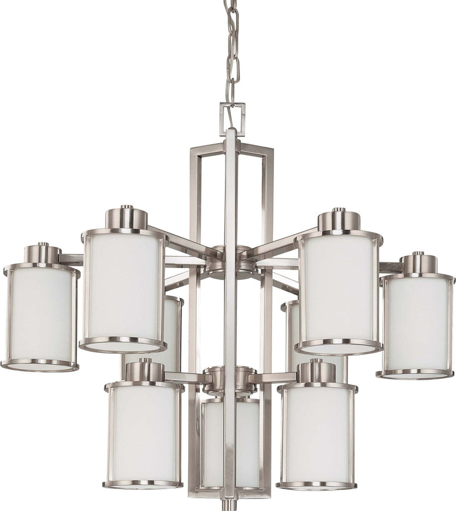 Nuvo Odeon - 6 + 3 Light Chandelier w/ Satin White Glass