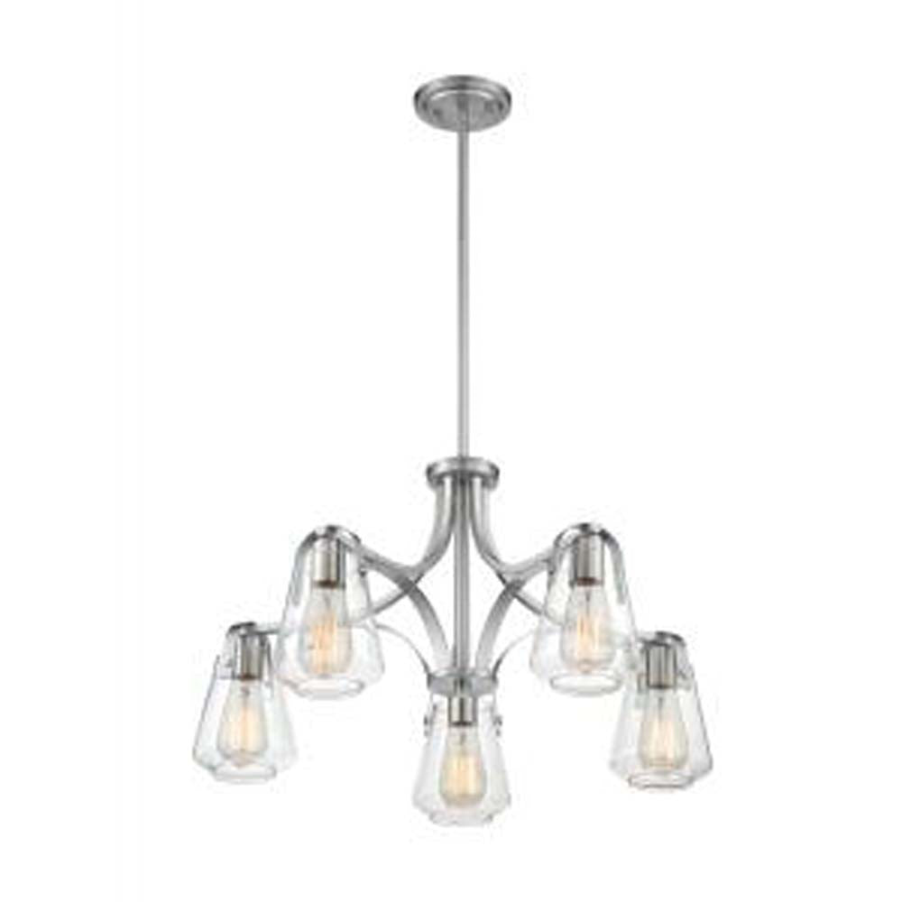 Nuvo Skybridge 5 Light Chandelier with Clear Glass Brushed Nickel Finish
