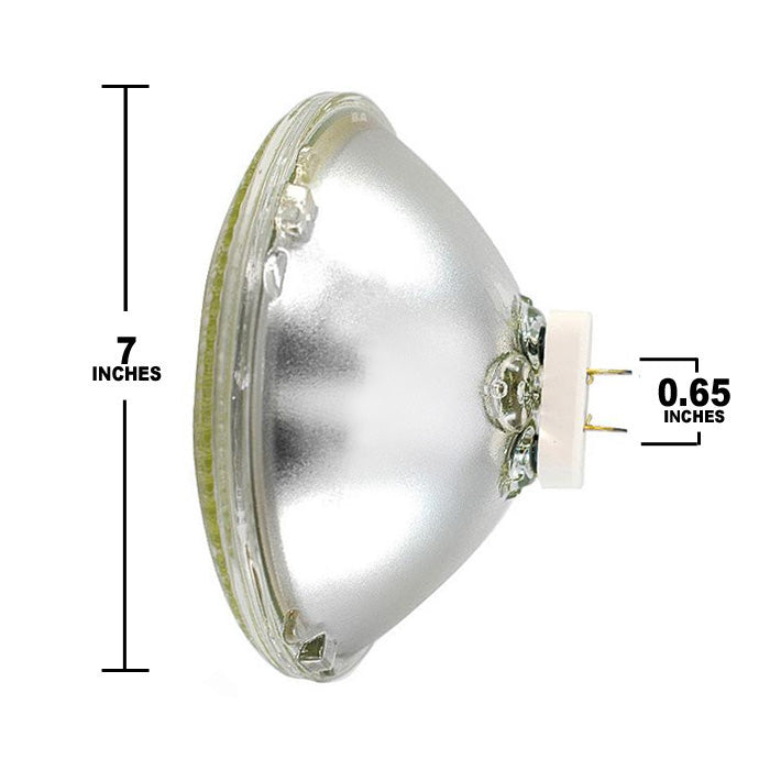This OSRAM 500 watt PAR56 Par can bulb is a medium flood with a beam angle of 30. It has a base of GX16d mogul end prong, a color temperature of 2950k and a lumen of 8800. Its diameter is 7 inches. The maximum overall length is 5 inches. This has a CC-6 filament. This OSRAM 500 watt PAR56 Par can bulb is a reflector, has a voltage of 120 and is an Incandescent bulb.