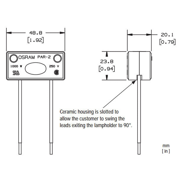 PAR56 bulbs with GX16d base.- Qualifications: UL Recognized-E31557, CSA Certified- Wire Leads: Any UL recognized and CSA certified wire: AWG18 or 16, 600 V min, 392 F min- Wire Leads length: 48 inch