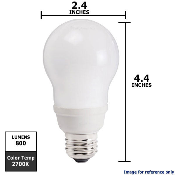 Philips 14 watts EL/A SWP A-Shape Soft white 2700K Compact Fluorescent Light Bulb- Energy Saver 14 watt CFL bulb equivalent to 60 watt incandescent light bulb- Bulb brightness 800 Lumens- Color Temperature: 2700K Soft White - Long Life: 8000 hours- outdoor use requires a weather-protected fixture when used base down, do not use where directly exposed to water