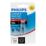 This Philips 50W 12V light bulb provides a bright white glow that can shine up to 2,000 hours.Brightness: 700 lumensLight Appearance: 3000K Soft WhiteProvides a bright white light making it perfect for commercial and residential cabinets and fixturesUse in 12-volt enclosed fixturesT4 bullet shape with a GY6.35 bi-pin base