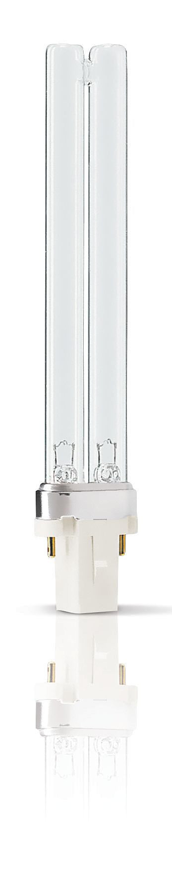 Philips 325126 TUV PL-S 9W lamps are compact UVC (germicidal) lamps used in residential water and air disinfection units. The compact size of the lamp allows for a small system design and design flexibility. The Philips 325126 TUV PL-S 9W lamps offer constant UV output over their complete lifetime, for maximum security of disinfection and high system efficacy. Thanks to the single-ended lamp base, lamp replacement is easy.
