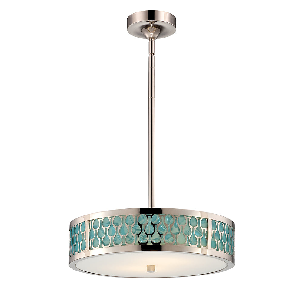 Raindrop - 3 Module Small Pendant w/ White Glass and removable Aquamarine insert