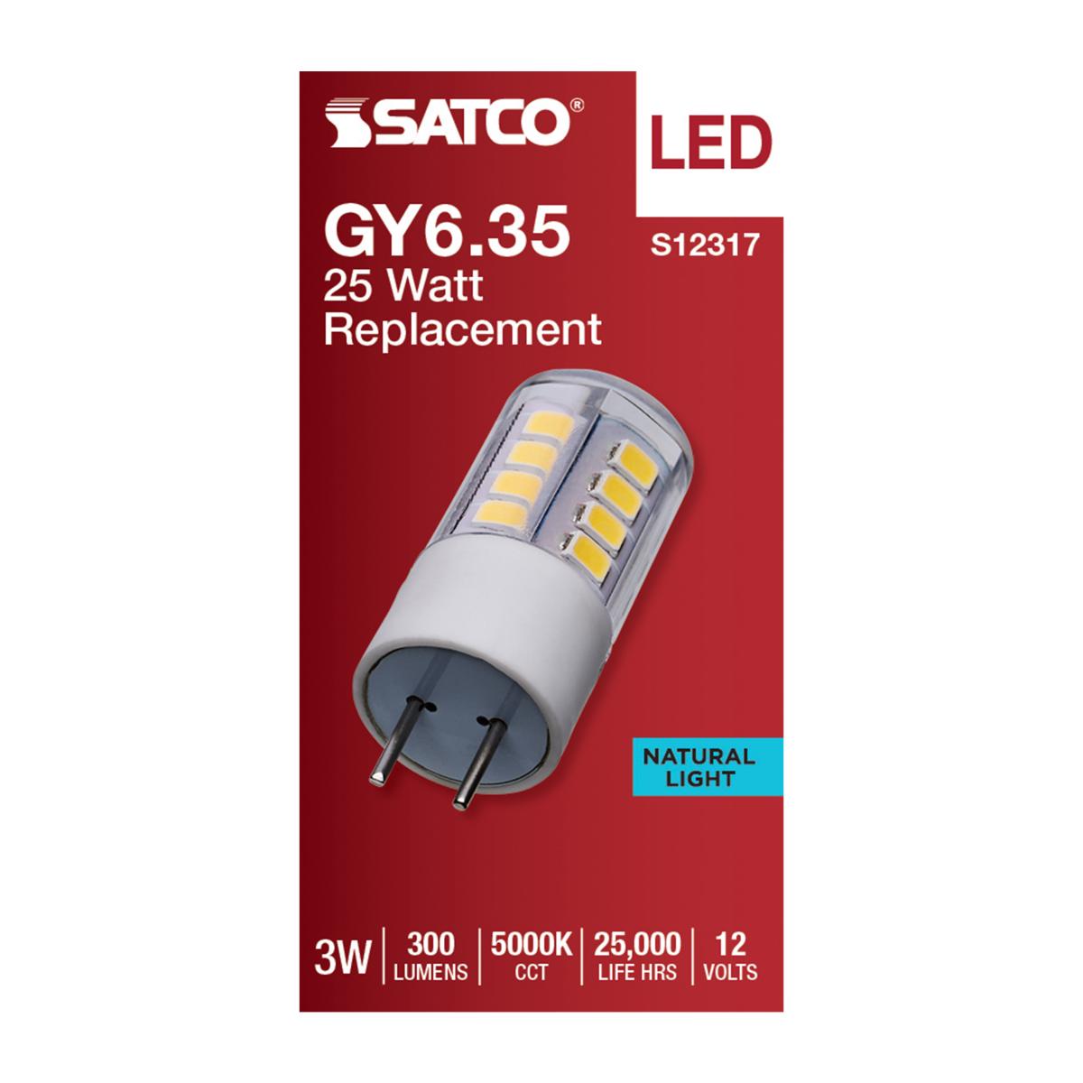 Illuminate your surroundings while maximizing energy efficiency and cost-effectiveness with SATCO NUVO S12317 3-watt, GY6.35-base, Halogen replacement lamp. Engineered for low 12-volt operation and featuring 300-degree omni-directional lighting, this lamp is versatile for a multitude of applications, including accent lighting, chandeliers, landscape illumination, and displays. Available in 5000K CCT with a clear finish, this lamp, equipped with LED technology, will ensure substantial life hours and long-term savings.