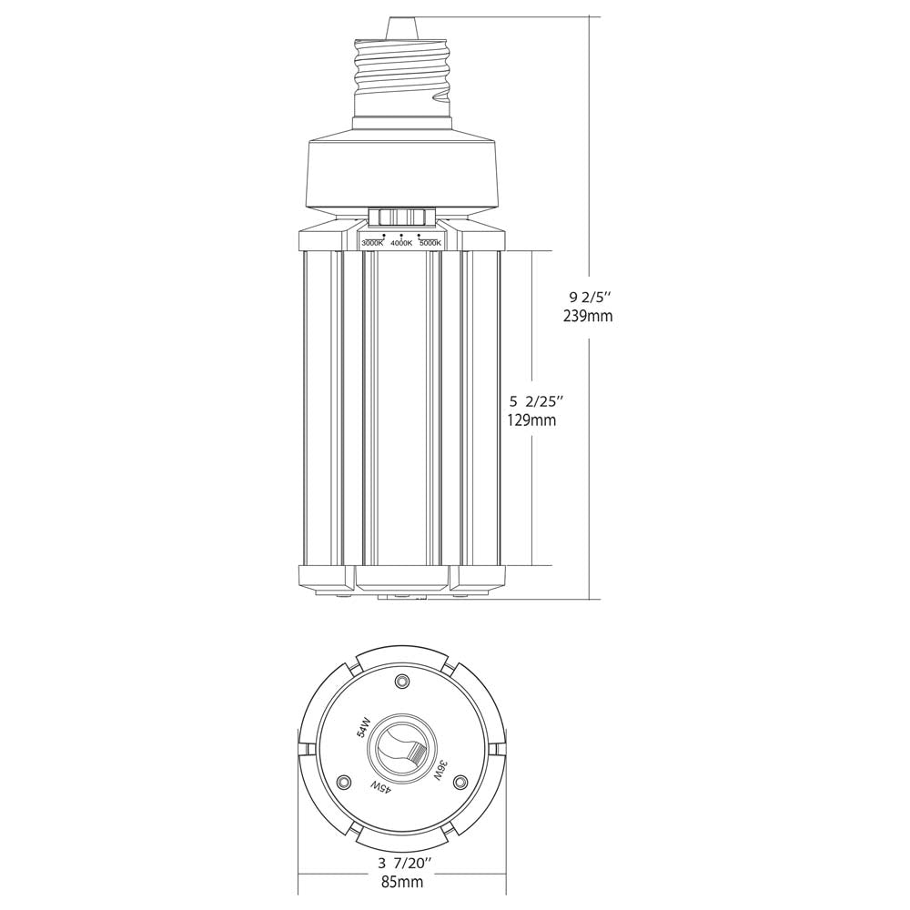 Satco LED HID Replacement 54/45/36 Wattage & CCT Selectable Mogul Base 100-277V