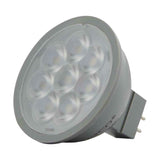 Satco 6 Watt MR16 24 Volt Bi-Pin GU5.3 Miniature Round-Pins Base Grey Finish 2700K Warm White 550 Lumens 25,000 Hours Reflector LED Lamp - Dimming - 50 Watt Incandescent Equivalent - Lensed - Flood 40 Degree Beam Angle - cULus Damp - Enclosed Rated - RoHS Compliant - FCC Compliant - CEC Status: California T24 Compliant