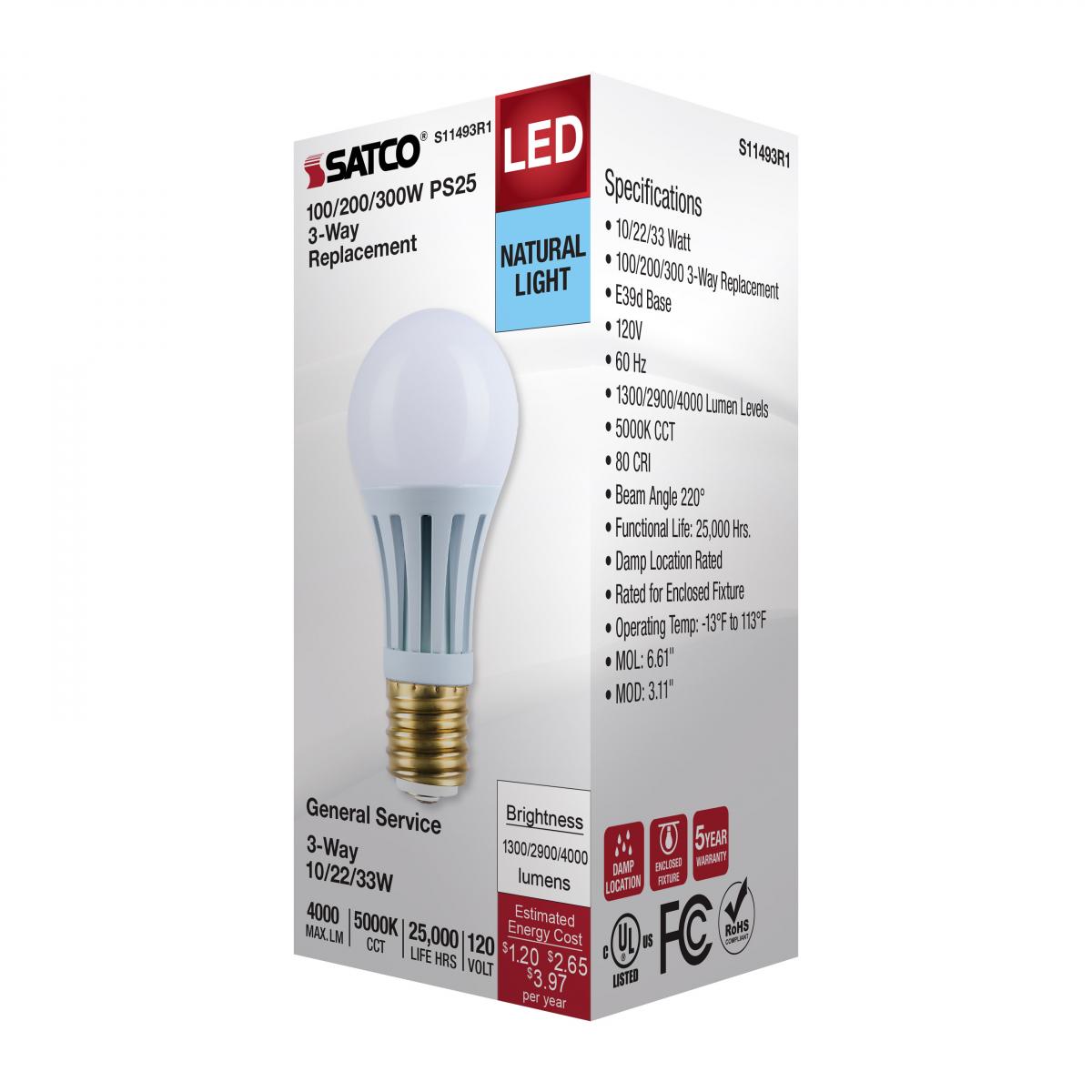 Satco PS25 LED Three-Way Lamp Wattage Tunable 5000K E39d Mogul Base 120v