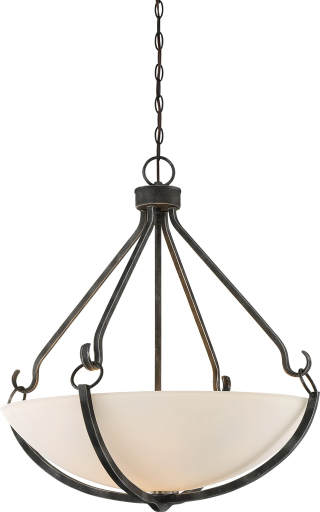 Nuvo Sherwood 4-Light Iron Black Pendant w/ Satin White Glass in Brushed Nickel