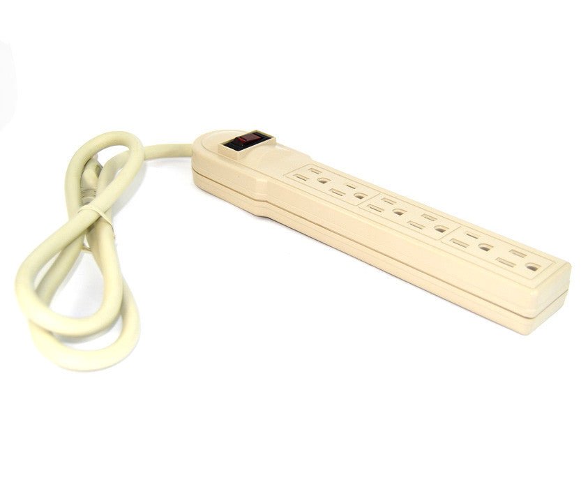 This six outlets power strip is recommended for Computers, Stereos, DVD Players, Television's, small appliances and many other electronic items.Features: - 270 Joules- 15 Amp fused circuit breaker with reset feature to safely shut off if overload or short circuit occurs,- Heavy duty 14/3 SJT line with 3 feet cord with molded plug- high impact holding.Specifications:- Electrical: 125VAC, 15Amps (1875 Watt)- Outputs: 6- Max Surge Voltage: 6KV- Max Spike Current: 4500Amps, 104F (40C)- Max Clamping Ratio: 1.2:1- Clamp Response Time: <1 nanosecondTemperature Range: 32F to 140F (0C to 60C)Caution: Use only in Dry Locations.