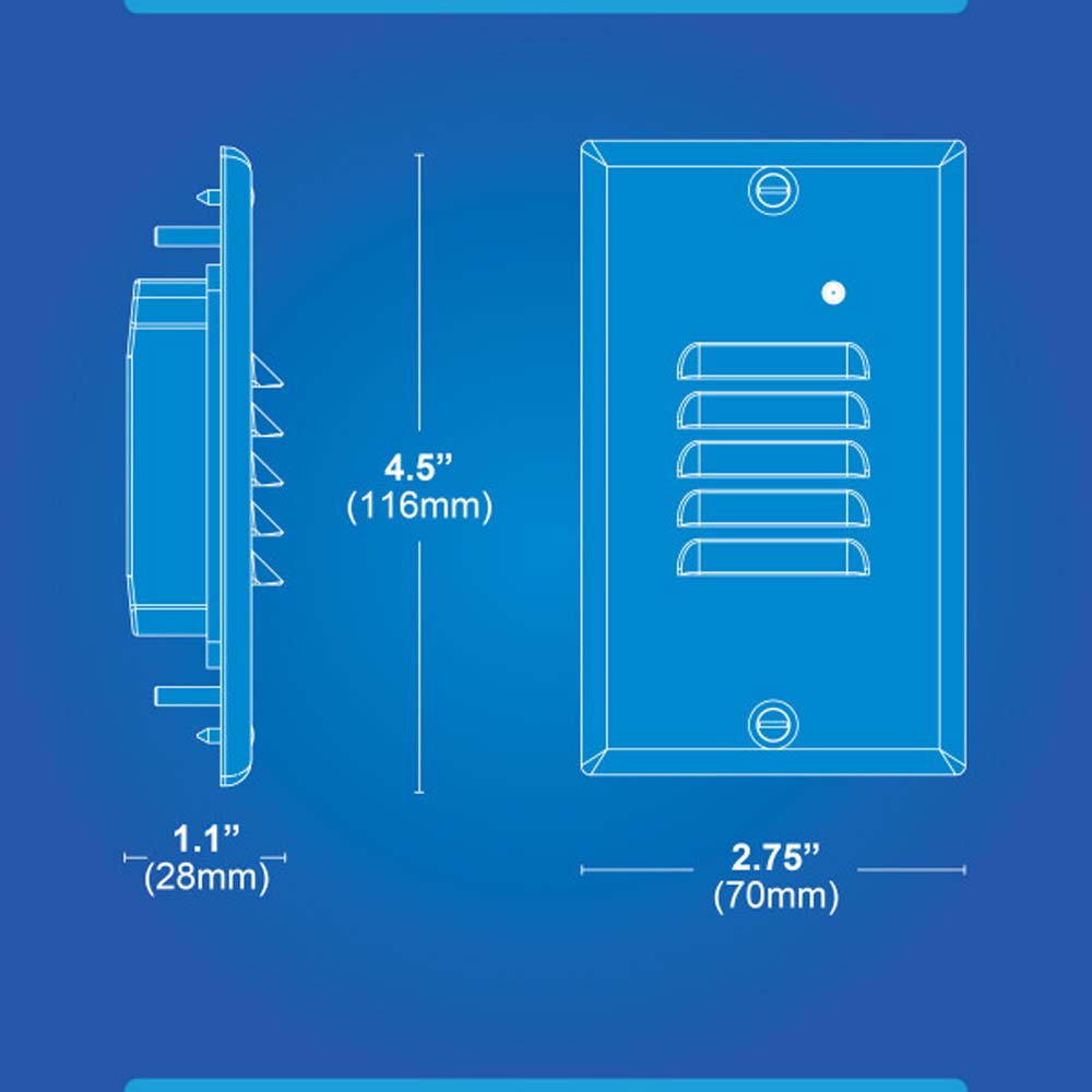 Features:- Includes one LED Step Light and one Black Verical Louvered Faceplate