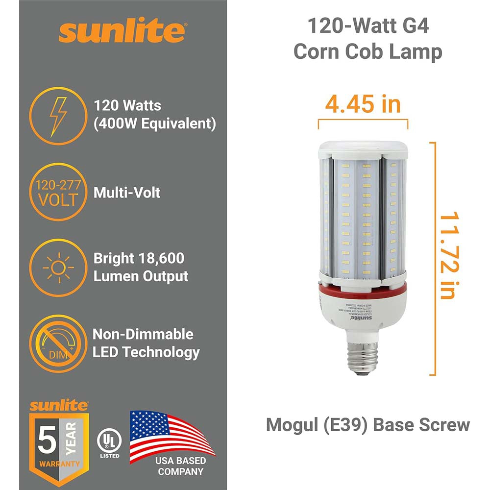 Sunlite 120w LED G4 Corncob Bulb 120-277v E39 Mogul Base 5000K Bulb - 600w Equiv