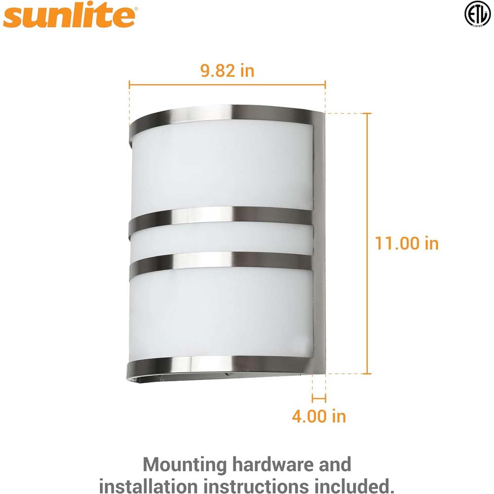 The LED Wall Sconce Half Cylinder Fixture by Sunlite adds a stylish touch to any design. These fixtures let you select the color temperature. Using a switch on the back of the fixture choose the color you prefer: 3000K Warm White 4000K Cool White or 5000K Daylight. These long-lasting LEDs so no need for replacement bulbs and up to 50,000 hours of dependable upkeep-free use. While using only 15 watts of electricity this dimmable fixture produces the same amount of light as a 75-watt light bulb and provide a high lumen output of 1050. The light output can be changed to change the ambiance from brilliant ambient lighting to warm and cozy accent lighting when connected to a compatible LED dimmer. For safety and quality these fixtures are ETL Listed. These fixtures are the perfect low-maintenance option for installs in homes or businesses. Ideal for Porches Patios Garage Openings and more. Fixture Dimension: 11 H x 9-7/8 W x 4 D.