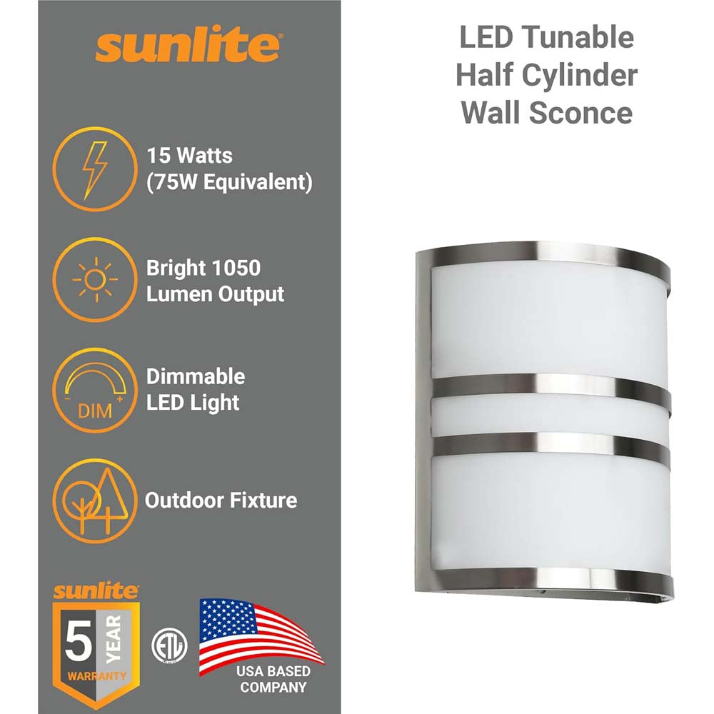 Sunlite 15w LED Half Cylinder Wall Sconce Fixture CCT Selectable - 75w equiv