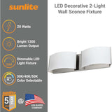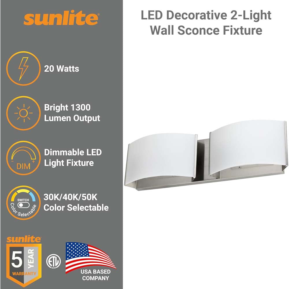 Sunlite 20w 2-Lights LED Decorative Vanity Fixture CCT Selectable -100w equiv