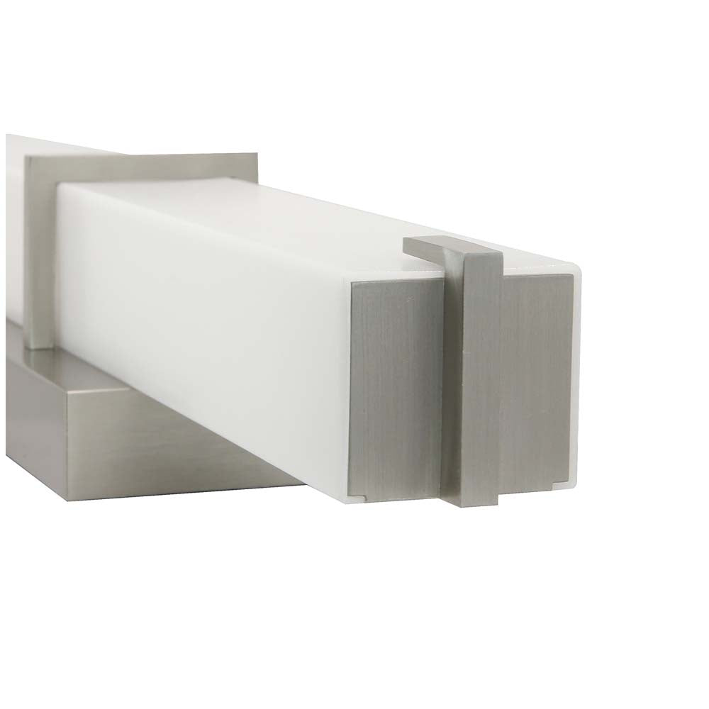 FEATURES:- MODERN DESIGN - The clean modern design of this 18 wall fixture trimmed in brushed nickel finish and made with a durable aluminum and steel will compliment any vanity bathroom or powder room. It can be mounted horizontally or vertically depending on your preference.