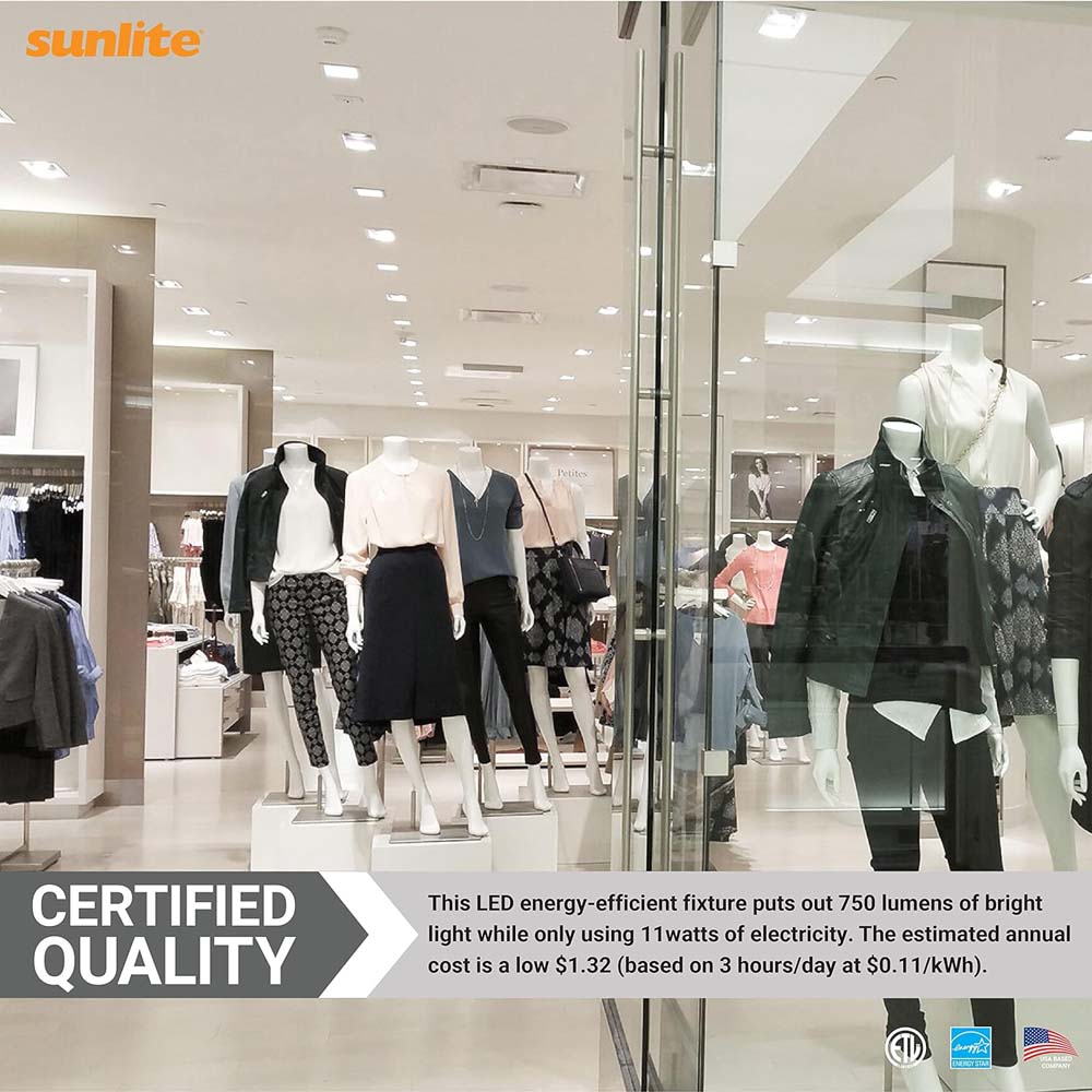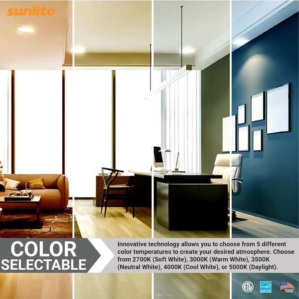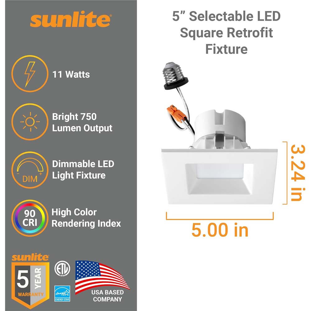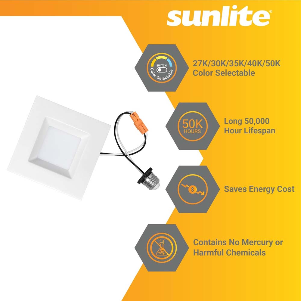 Sunlite 4-In 11w LED Square Retrofit Recessed Downlight CCT Selectable Dimmable