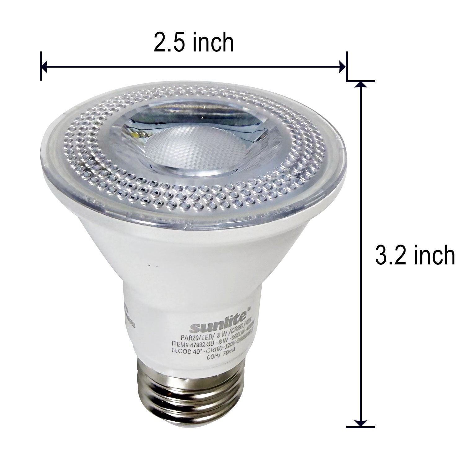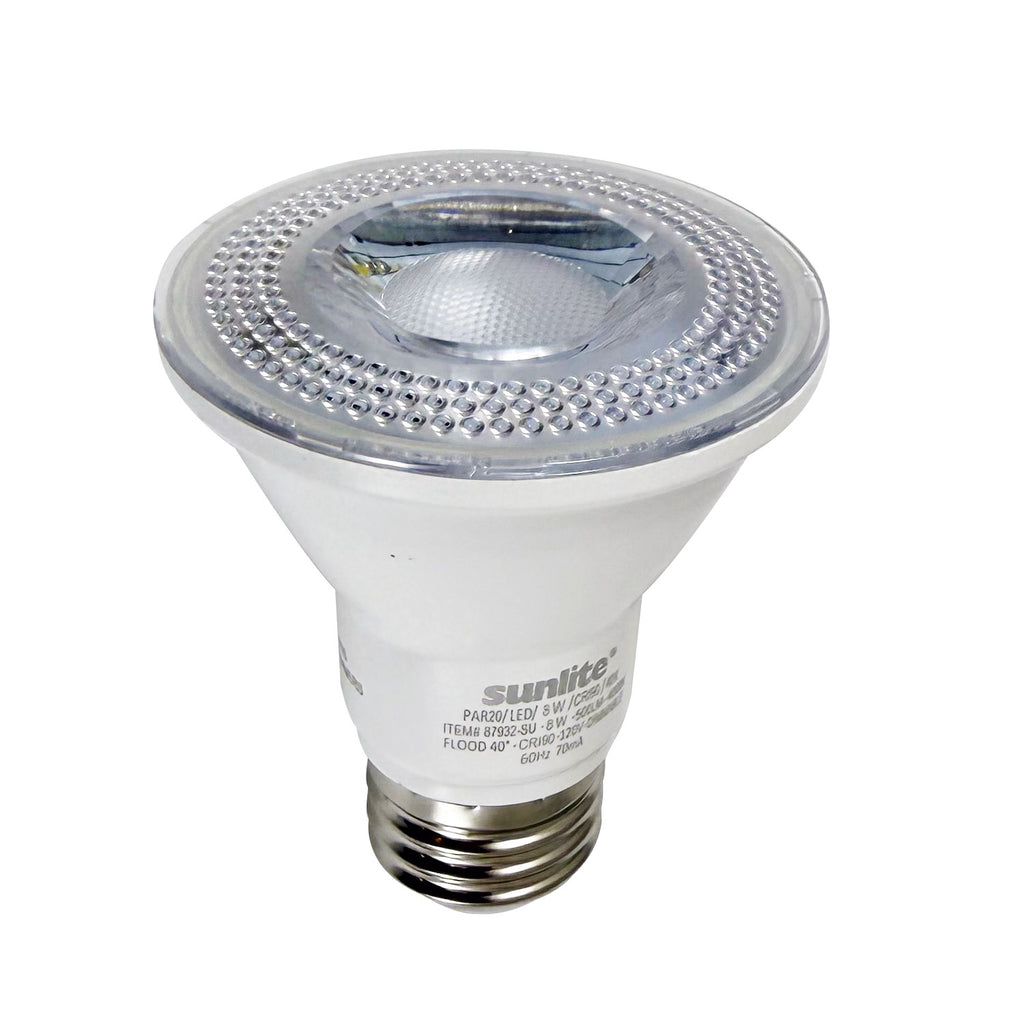 From the moment you switch on our PAR20 longneck led bulbs, they will produce a flicker-free dimmable light. These bulbs are UL listed for wet locations and have an IP Rating of 44. They are T20/ T24/CEC compliant and are a perfect option for indoor or outdoor use. With its direct targeted brightness, our led bulbs will create a unique style and ambiance in every room of your home! With these PAR20 led bulbs, you will save up to 75percent on your annual energy bill, instantly providing you with substantial savings. They have a lifespan of 25,000 hours and will reduce the hassle of replacing difficult-to-reach bulbs. Sunlite features the highest quality bulbs and fixtures designed to meet your home, office, or workplace needs. We are committed to providing our customers with outstanding service, expertise, and durable products. Our PAR20 90 CRI bulbs are a worry-free choice, backed by our 3-year manufacturer warranty. Tested Compatible Dimmers: LEVITON 6161 LEVITON 6631 LEVITON 6633P LEVITON 6681 LEVITON 6684 LEVITON MIR-600 LEVITON IPL06-10Z LUTRON CTCL-153PH-WH LUTRON DV-600P LUTRON S600 LUTRON SLV-600 LUTRON TG-600 LUTRON TG600PH LUTRON DVCL-153P