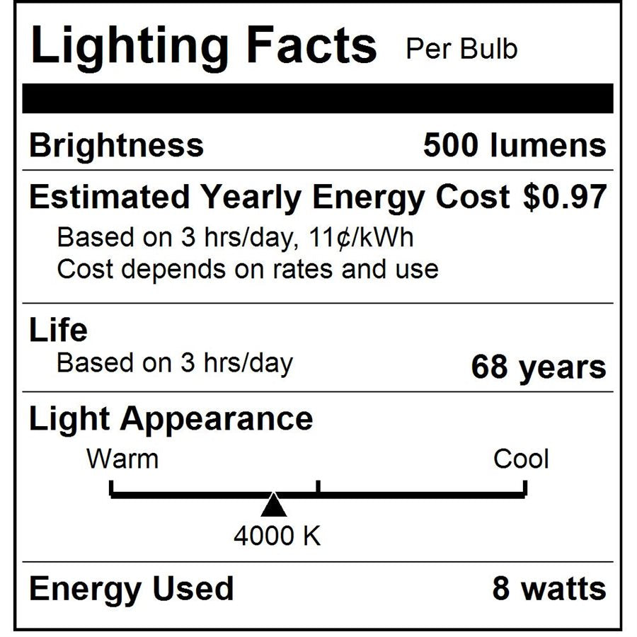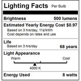 - Equivalent Wattage: 50 equiv