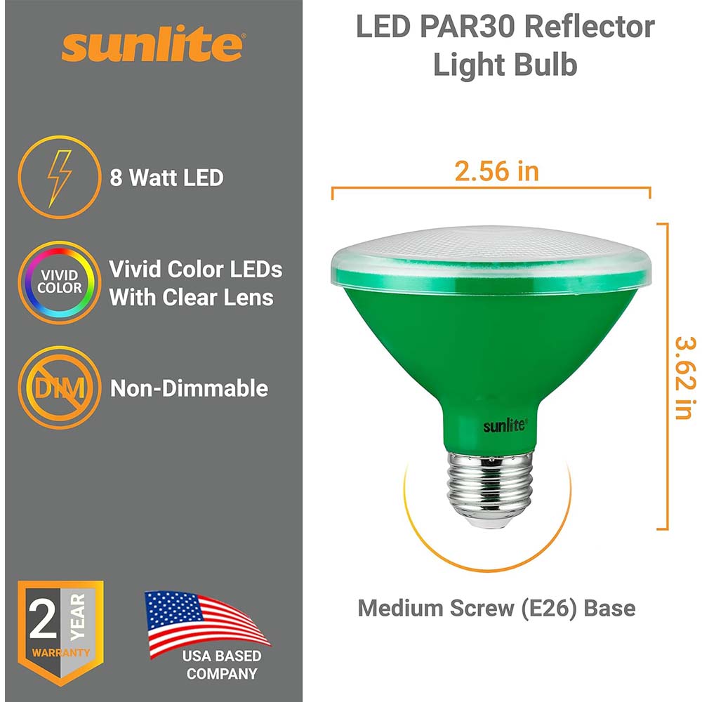 Sunlite 8w LED PAR30 Short Neck Green Colored Floodlight Bulb - 75W Equiv
