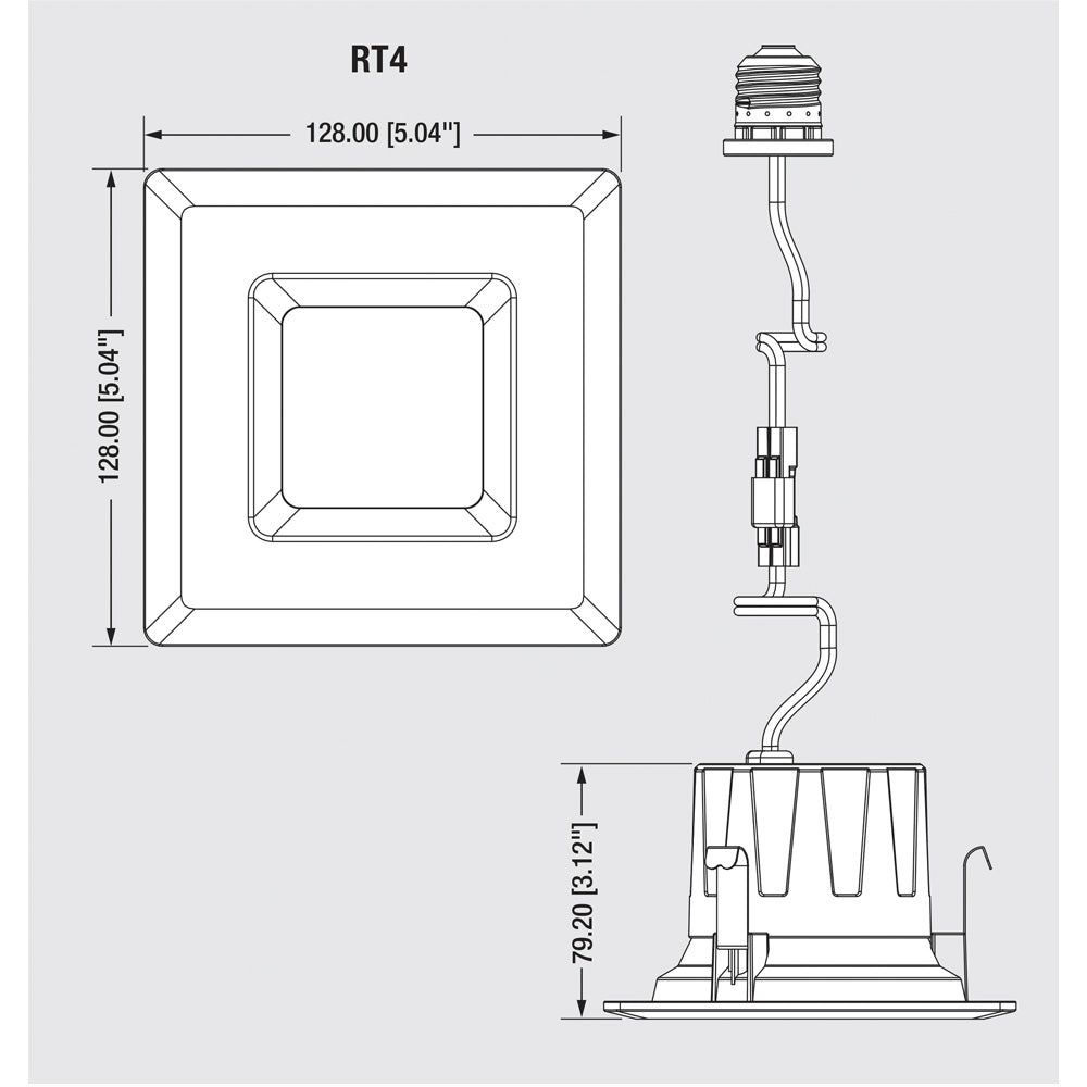 600lm 5000K 90CRI, SQUARE LED recessed downlight kit replacing up to 50W incandescent BR30, suitable for 4" housings. Medium base socket adaptor included. Integrated white trim