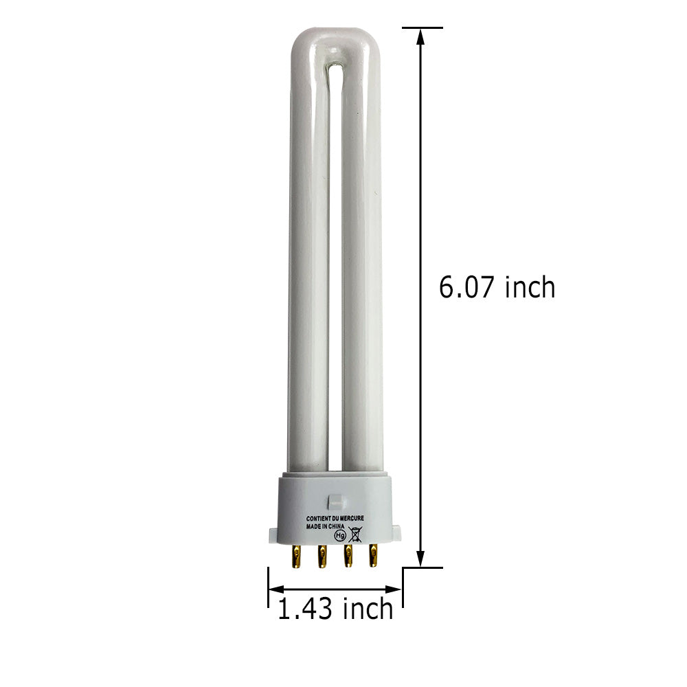 This Ushio 9 watt bulb has a 4Pin 2G7 base. This lamp has a color temperature of 4100K and a luminous flux 600LM. It has a rated life of 10000 hours and an overall length of 5.7 inches.