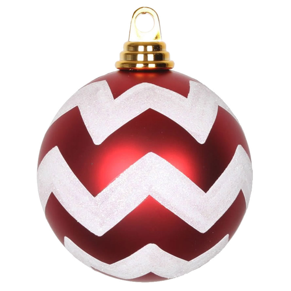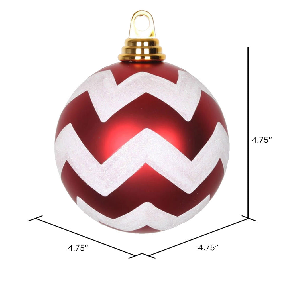 Vickerman 4.75 in. Red-White Matte/Glitter Chevron Ball Christmas Ornament, 3 per Box