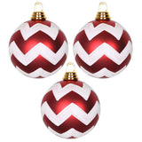 3PK - Vickerman 4.75 in. Red-White Matte Glitter Chevron Ball Christmas Ornament