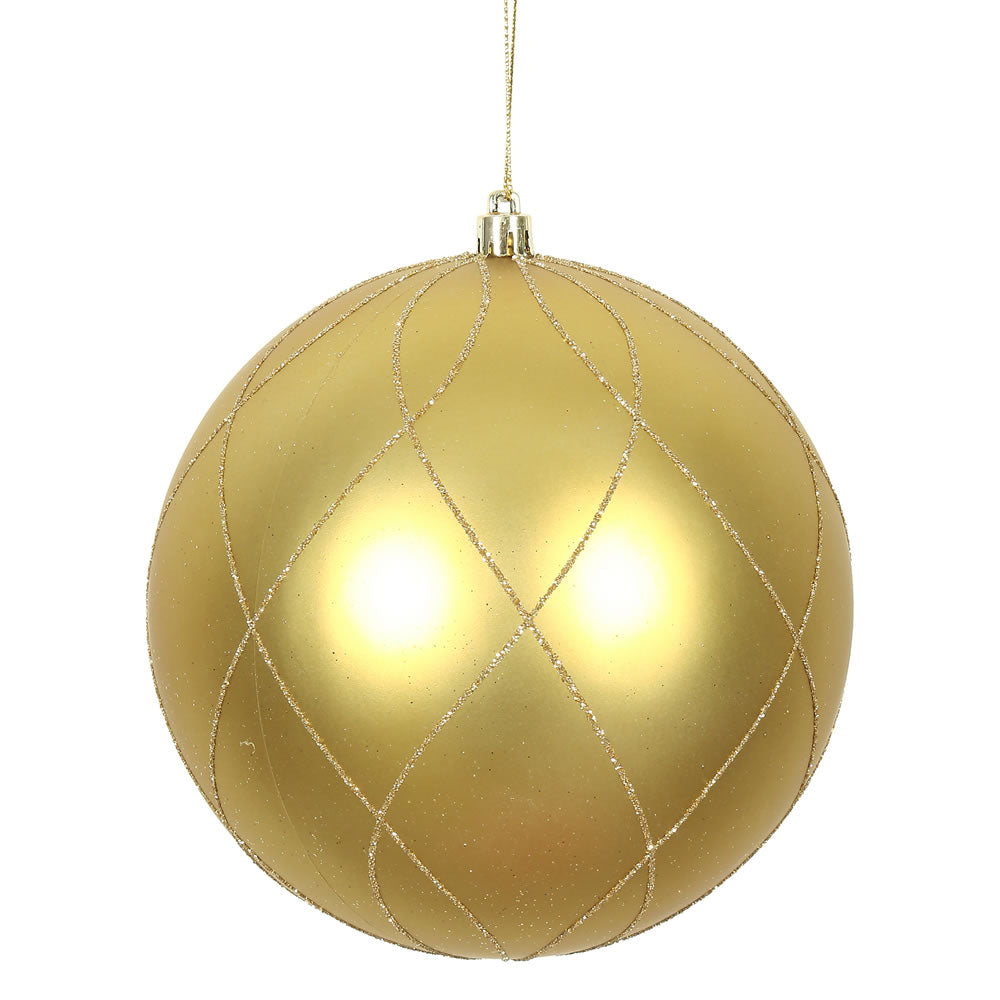 Vickerman 4 in. Gold Matte and Glitter Swirl Ball Ornament, with drilled and wired caps. Comes 4/box.