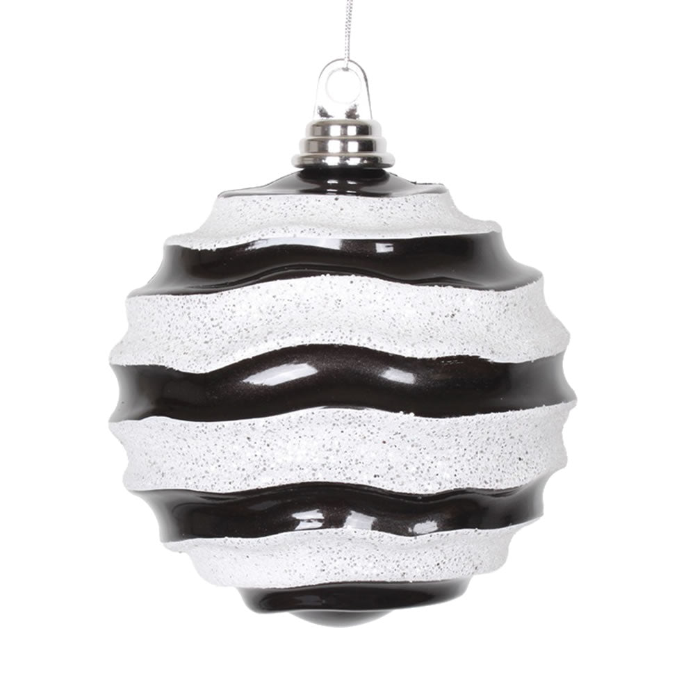 Vickerman 6'' Black-White Candy with Glitter Wave Ball Christmas Ornament