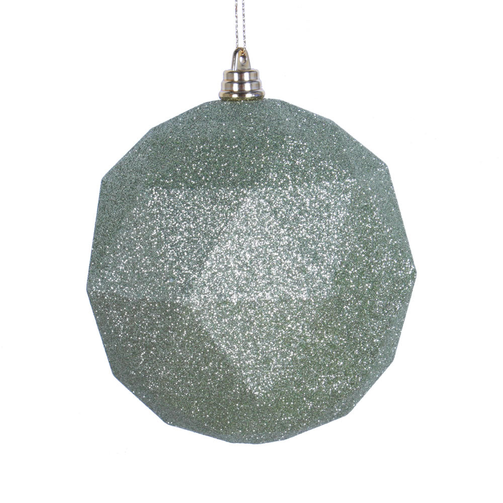 Vickerman 6 in. Celadon Geometric Ball Ornament Featuring a Glitter Finish. Comes 4 per bag