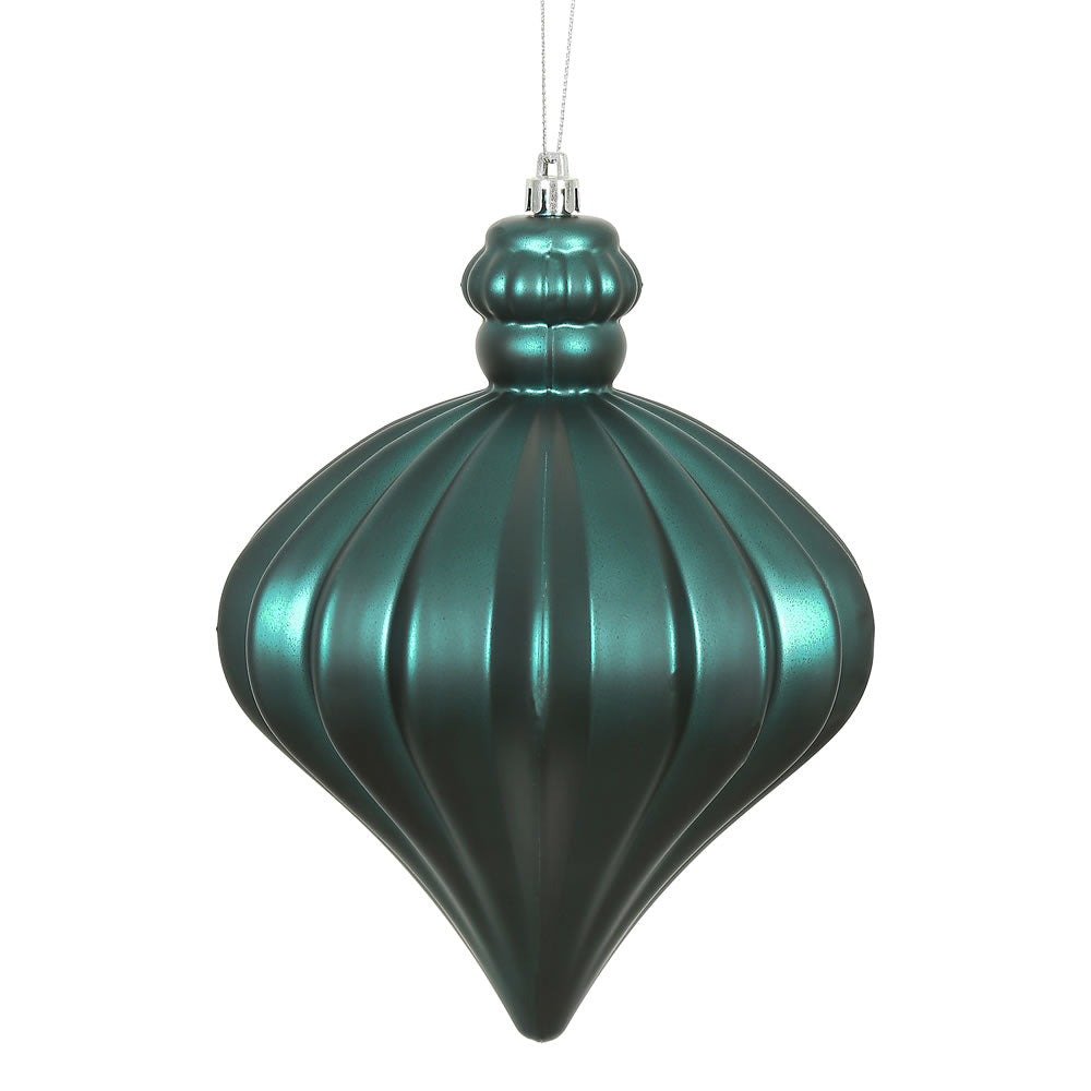 Vickerman 6 in. Sea Blue Matte Onion Drop Ornament, with drilled and wired caps. Comes 4 per Bag.