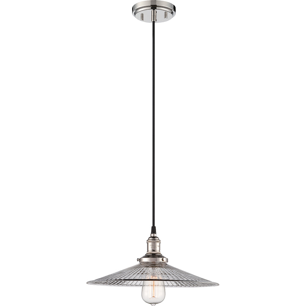 Nuvo Vintage 14" 1-Light Pendant w/ Clear Ribbed Glass in Polished Nickel Finish
