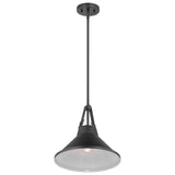Zelda Pendant E26 Base 60w Black Finish Black Metal Shade Faux Leather Straps